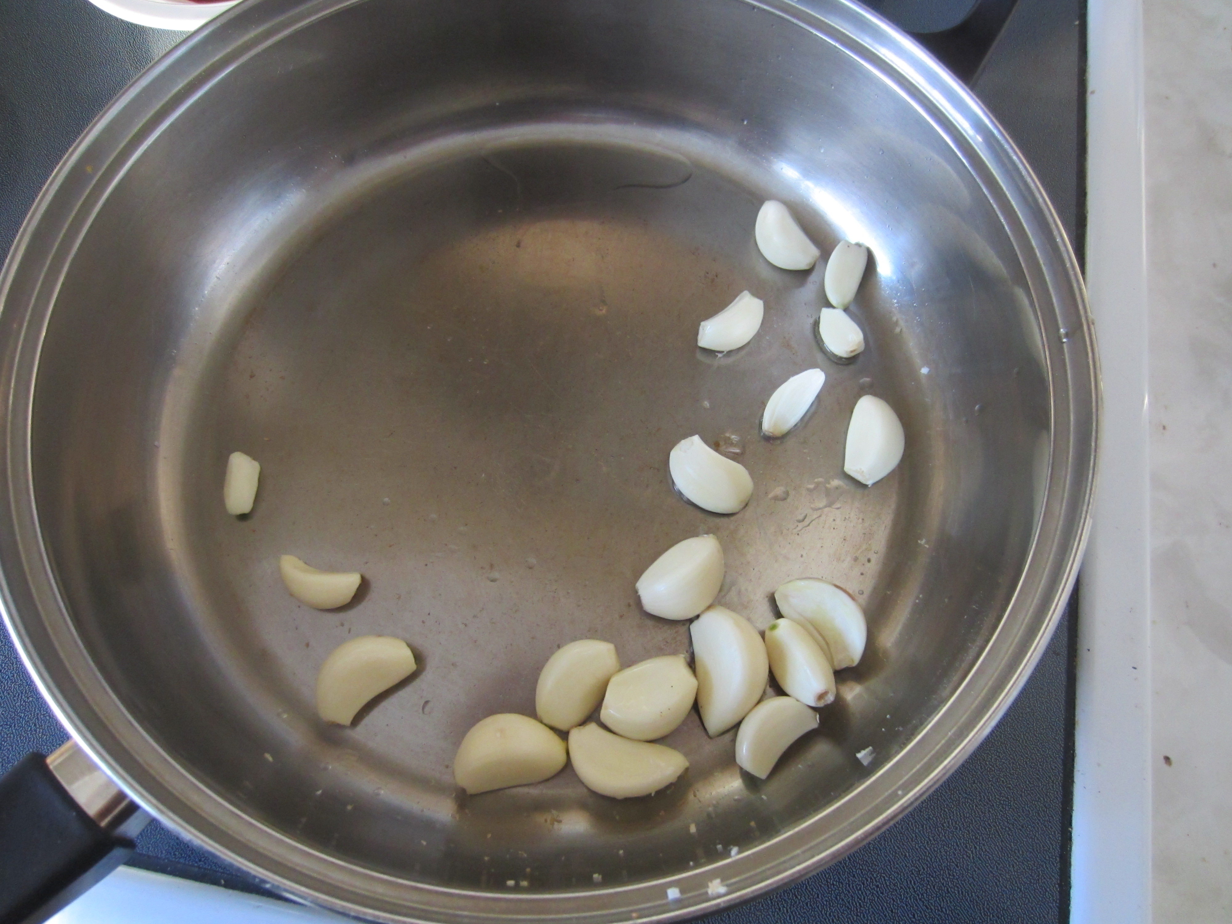 2. Roast garlic cloves in the same pan with little oil for a minute