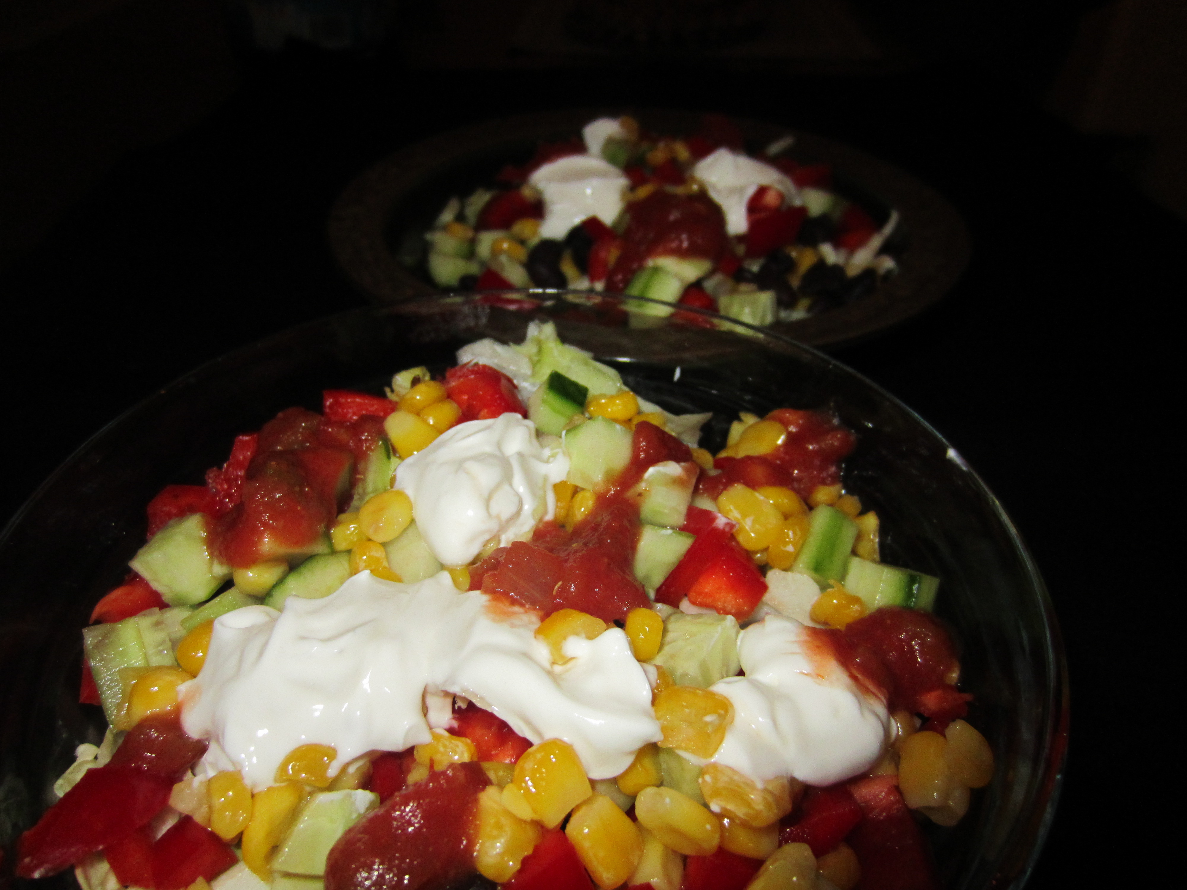 Very healthy and tasty Mexican salad in bowl for young and old. It is crowd pleasure, you can keep everything ready and guest/family can help themselves.