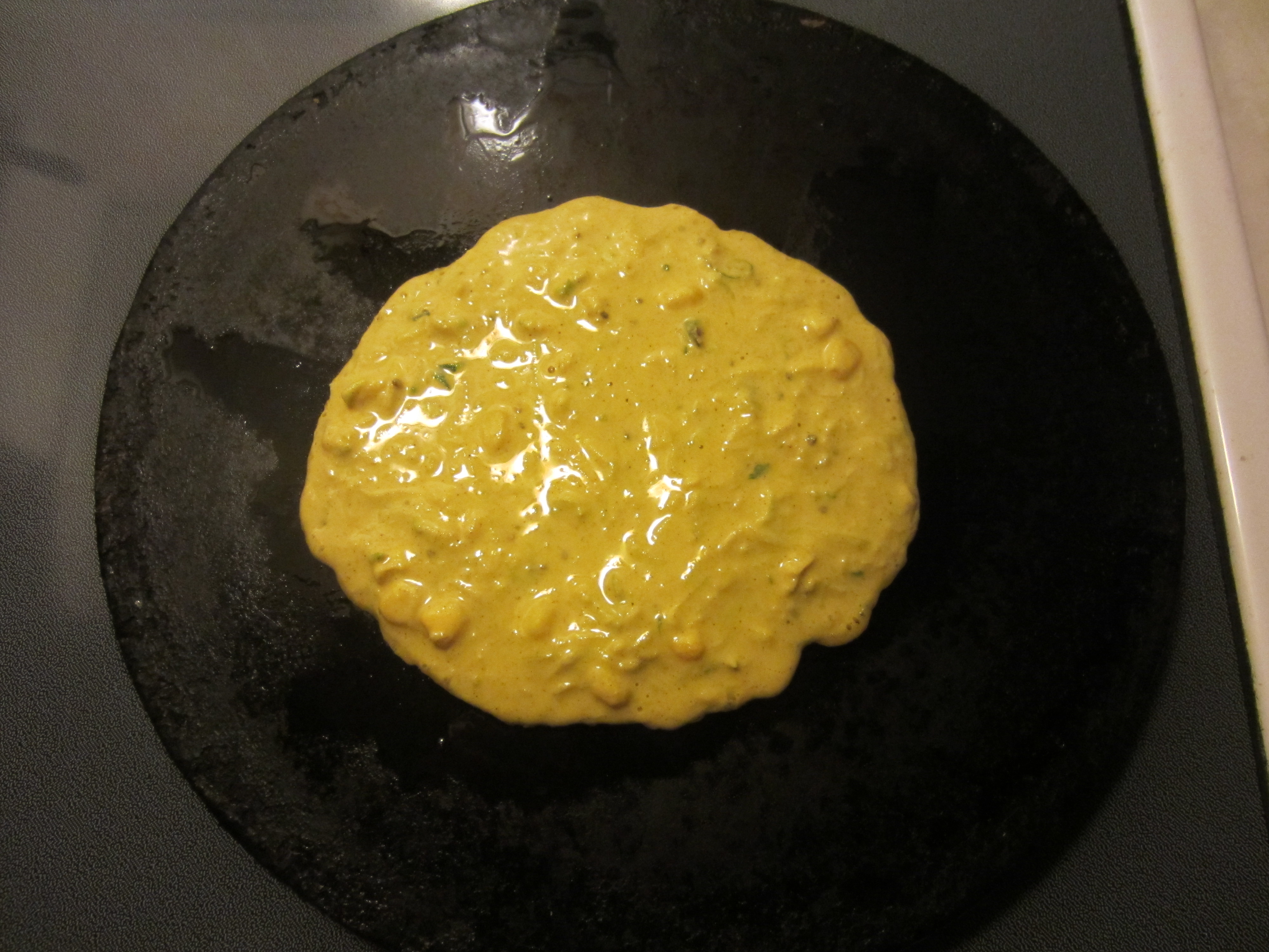 Presenting egg-less omelet recipe. It is an Indian version of spicy pancakes. It is made of mix flours. All the flours in this recipe are available in Indian grocery stores