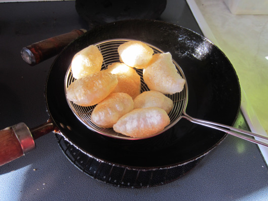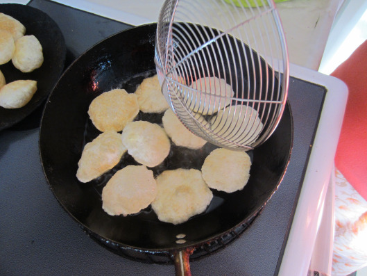 7. Remove on paper towel so excess oil is absorbed. Puris are now ready.