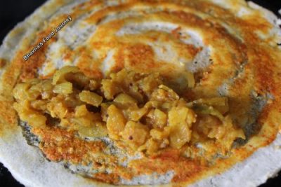 Tip: Always make first dosa small and thick , cook on one side, flip and cook on another side. When ready rub mini dosa on the pan, it will make pan non stick.  Now pan is ready to make dosa.