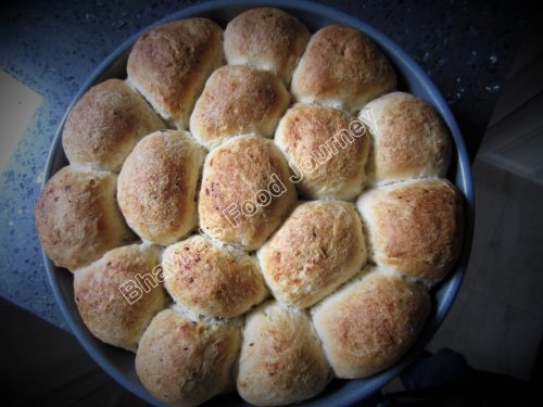 I wanted to invite someone for dinner when they were visiting Toronto but they didn’t have much time so they decided to come for afternoon masala chai/tea. I was thinking  about  what to serve them as I like to make something fresh with tea. After some brain storming, I decided to try this bread. Everything I make has many flavours so when I decided to make bread, immediately I thought of adding herbs to it. It was my 1st trial and my family hates when I try to make something new when I have guests…lol. It was a great success and my tray was empty in no time 😀 😀 .