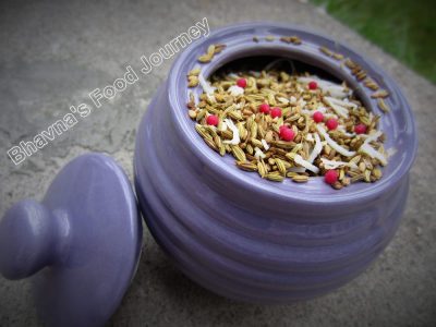 We Indians like to eat mouth freshener after every meal. Good mouth freshener can help one digesting the food. I prepared this mouth freshener especially keeping my daughter in mind so she can eat it after lunch during her maternity. It has ingredients which helps in mother’s milk increase, gas, indigestion, etc. I have only added 5 ingredients but there are many other things can be added like poppy seeds, flex seeds, etc.