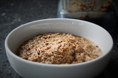 Another dish which is very famous as well is Misal, it is spicy sauce made with sprouted beans, many spices, coconut and served with pav/bun (bread). I have had misal at the road side stall few times but it did not please me. There was something that I did not enjoy until I prepared it myself. I already made it 3-4 times after that and I absolutely loved it!! I thought it’s time to share the recipe of misal I love! I am sure you will agree with me once you try it. This dish is high in protein as I am using sprouted beans. Here is the recipe of how to sprout beans at home. You can use few different variety of sprouted beans as per your taste, I had yellow peas, brown chickpeas (gram) and moong bean. This recipe serves 2-3 people.