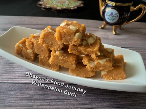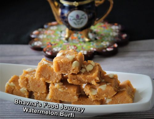 Best out of waste! I prepared this today and I could not wait to share the recipe with you all. I have been seeing so many recipes using watermelon rind (skin). First, I was little skeptical but then I decided to give it a try and with some imagination I decided to make burfi using rind. To my great surprise, it tasted amazing! I never used rind before and I always end up throwing skin after eating watermelon. Next time, I will be thinking twice before discarding the skin. You can replace sugar and milk powder to sweetened condensed milk. You can add semolina and besan 1 tbsp each, I made it gluten free version. Except for the rind, you may find everything in your pantry.