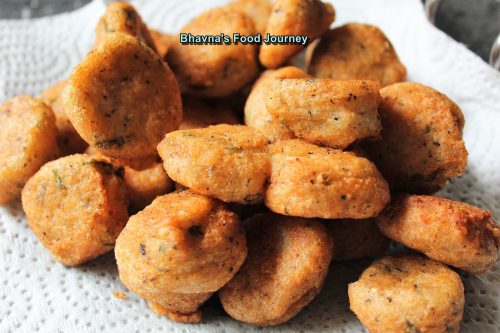 5. These pakoda can be serve by dipping them in yogurt mixed with some salt and sugar, date tamarind chutney, green chutney, pomegranate seeds, chopped cilantro, as per your taste. For vegan version, you can serve with green chutney. You can also prepare sambhar or tomato rasam which will go well with these pakoda.