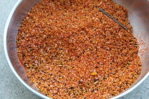 3. Grind to coarse mixture. Now add kalongi, haldi, lal mirch, asafoetida and salt to this mixture. Mix well.