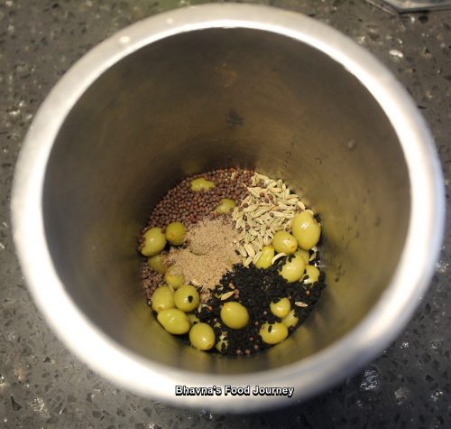 We Indians love pickle. I have many Indian pickle recipes like instant carrot pickle, instant grapes and mango pickle, gunda or lasoda mango pickle or my most famous chana fenugreek mango pickle. None of these pickles are possible without pickle masala.