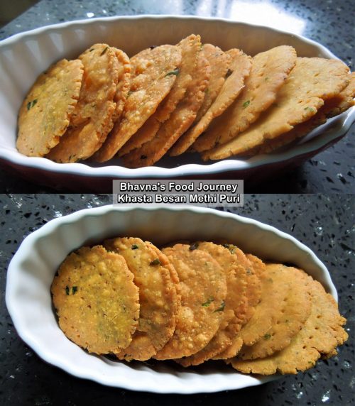 These puris are so aromatic as I have added fresh methi (fenugreek). They are very crispy and a great snacks with masala chai. You can also use these puri in bhel or chat.