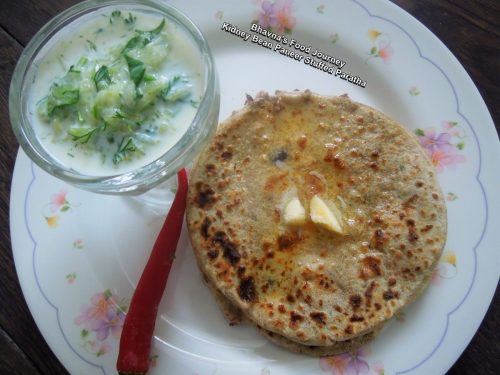 You may have seen my paratha recipes, I really enjoy preparing many different types of stuffed or flavoured roti/paratha at home. I can prepare paratha using anything I have in my kitchen, so this time it was red kidney beans (rajma). I had some leftover boiled kidney beans from other recipes and also a small piece of paneer in my fridge so decided to create something different. Whenever I have any leftover, I experiment something new. This time I decided to make paratha using boiled rajma and paneer. To add more flavour, I added dill leaves which you can skip if you don’t have it at home. You can add chopped coriander or spinach instead. Paratha turned out super delicious bursting with flavours.