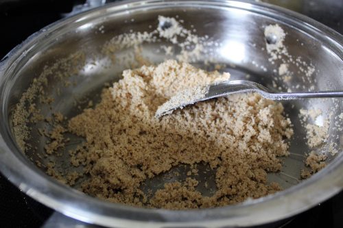 1. Soak 5-6 almonds in hot water for 30 minutes. Remove skin when you can and then chop. Keep this on side.