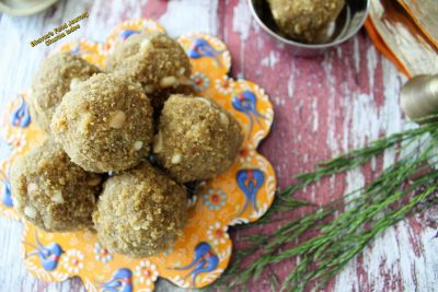 I have made some changes to his recipe but the process is almost same. This recipe makes around 15-16 ladoo. Here is my oats churma ladoo recipe