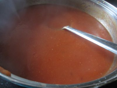 3. In a pan, heat 1 tbsp oil or ghee, add cumin seeds. When seeds stars to pop, then add puree tomato onion mixture, some water to adjust soup consistency, salt, black pepper powder and tomato ketchup to your taste. If you like some flavours then add few chopped mint and sweet basil. Simmer on low for 5-7 mins stirring frequently.