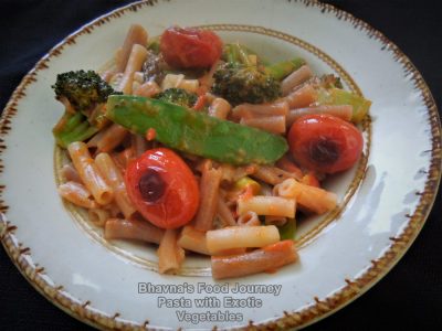 The name of this dish may sound familiar to some but not to the others. Recently I went to India and I learned that the colour bell pepper, broccoli, etc are exotic vegetables as they are rare and very expensive vegetable in India. I live in Canada so I have easy access of all the vegetables I am using in this recipe. You can replace these with any vegetable of your choice like, green pepper (capsicum), onion, roasted tomato, sun dried tomato, etc. You may have seen my recent post on do’s and don’ts of making paste which will help in making perfect pasta every time.