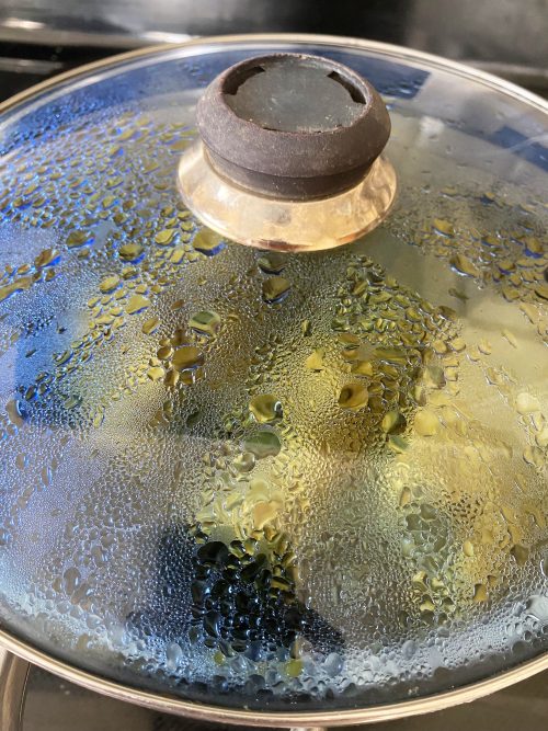 9. Heat 2 glass of water in a steamer or a big pot and steam patra (covering the lid) on high for 15 minutes and then low to medium heat for 20 minutes. Once done, turn off the heat.